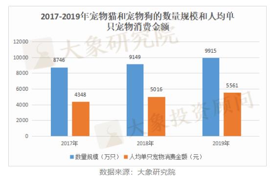在寵物消費(fèi)水平方面,2019年我國(guó)人均單只寵物的年消費(fèi)金額約為5,561元,相較于2018年的5,016元,增幅約為10.9%;