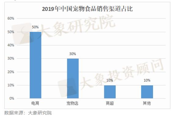 寵物食品方面,中國(guó)寵物食品銷售渠道以電商渠道及寵物店為主。2019年中國(guó)寵物食品銷售渠道中,電商占比約50%,寵物店占比約30%,商超渠道約為10%。