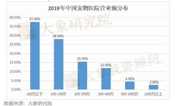 而從營(yíng)業(yè)額看,有80.9%的寵物醫(yī)院年?duì)I業(yè)額在300萬(wàn)元以下。目前中國(guó)的中國(guó)寵物醫(yī)院以中小規(guī)模仍以中小型個(gè)體企業(yè)為主,市場(chǎng)集中度有待提升。