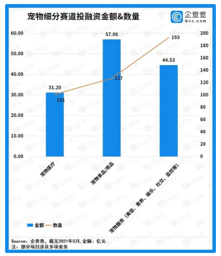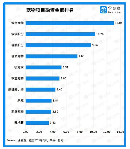 此外,2021年截至5月,寵物賽道共發(fā)生融資15起,總金額約為4.32億元。