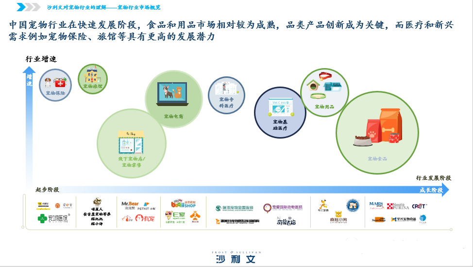從細(xì)分賽道來講,中國的寵物市場(chǎng)跟美國還是有明顯的差異,美國更多的是從線下發(fā)展慢慢轉(zhuǎn)向線上的發(fā)展過程。但是中國市場(chǎng)因?yàn)?000年左右經(jīng)歷了電商的蓬勃發(fā)展,食品和用品市場(chǎng)相對(duì)較為成熟?;剡^頭來看,中國廣大的線下部分,包括醫(yī)院,比如說像??漆t(yī)院,包括線下寵物零售店,體量是非常大的,但是發(fā)展階段是相對(duì)不完善的。因?yàn)榫€下有很大的提質(zhì)增效或者整合的空間。