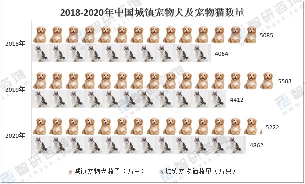 2018-2020年中國城鎮(zhèn)寵物犬及寵物貓數(shù)量