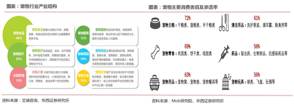 現(xiàn)階段寵物食品、用品領域是寵物經(jīng)濟的主要環(huán)節(jié)。