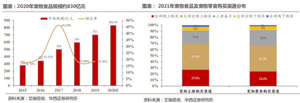 我國寵物食品規(guī)模約800億元、線上為主要銷售渠道。