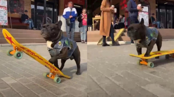 這并不是什么寵物雜技的罕見場面,而是北美寵物培訓(xùn)當(dāng)下最火的課程之一:教你的小狗滑滑板。最近,北美萌寵圈興起了“拍滑板小狗”的浪潮。最初只是在短視頻平臺(tái)風(fēng)靡,進(jìn)而有越來越多的寵物主參與進(jìn)這場“游戲”。