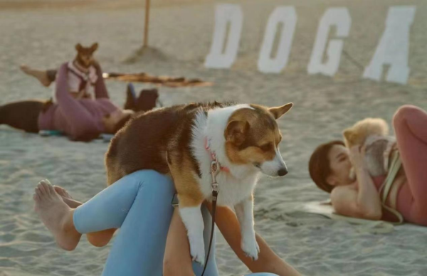 “寵物瑜伽”即和自己的小狗一起做瑜伽。和雙人瑜伽相似,許多經(jīng)過訓(xùn)練的狗狗會(huì)在瑜伽鍛煉姿勢中和主人“打配合”,最終呈現(xiàn)效果非常親密可愛,也能收獲不少流量和關(guān)注度。