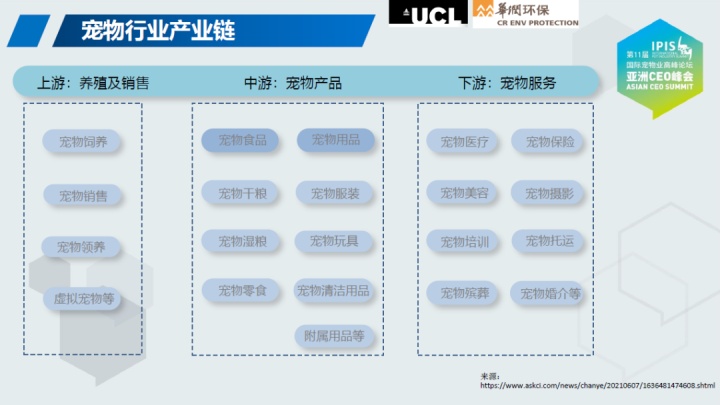 寵物行業(yè)是蓬勃向上的行業(yè),疫情過后中國寵物行業(yè)將會迅猛發(fā)展。2022年,全球?qū)櫸锸袌鲆?guī)模已經(jīng)在2021年2450億美元的基礎(chǔ)上增長到2610美元。寵物行業(yè)產(chǎn)業(yè)鏈包括上游的養(yǎng)殖及銷售,到中游的寵物產(chǎn)品,產(chǎn)品中包括食品、干糧和寵物玩具、用品,下游的寵物服務(wù),如醫(yī)療、美容、運輸?shù)拳h(huán)節(jié)都會涉及到碳排放的問題。