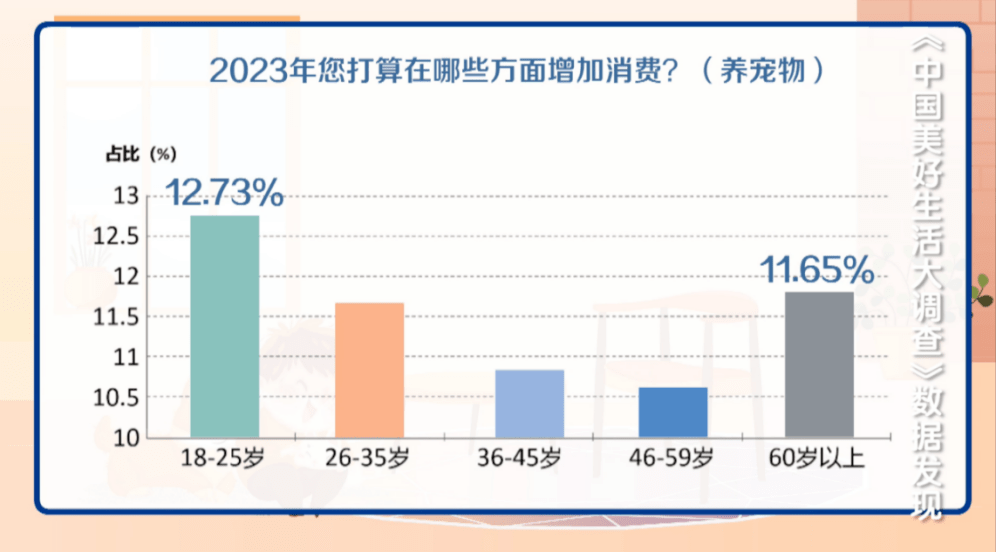 2023年的消費(fèi)榜中,寵物消費(fèi)是一個(gè)特別的存在?!吨袊?guó)美好生活大調(diào)查》發(fā)現(xiàn),2023年打算在寵物身上增加消費(fèi)的,比三年前高了7個(gè)百分點(diǎn)以上,寵物經(jīng)濟(jì)展現(xiàn)出巨大活力,成為熱門賽道。