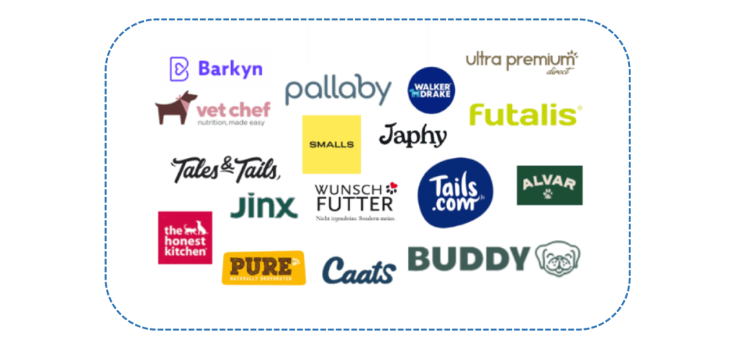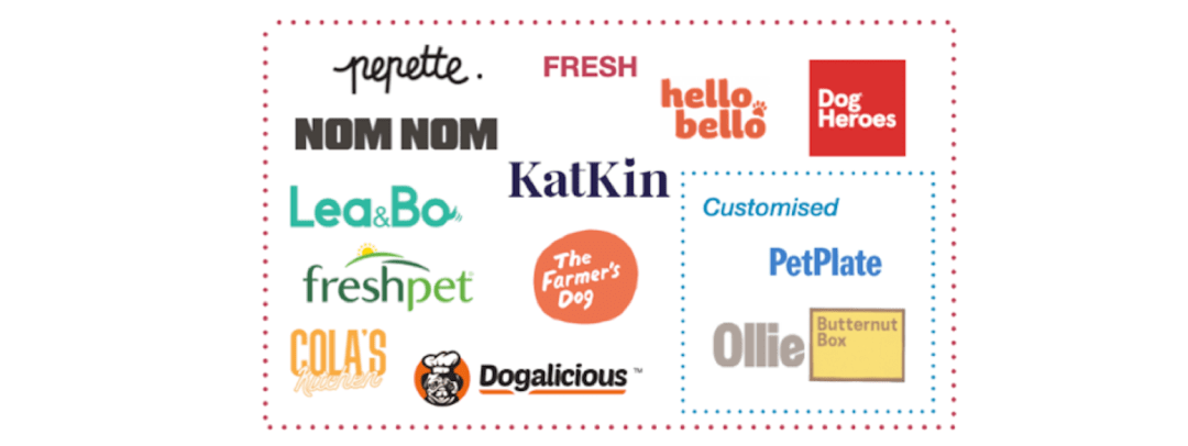 代表企業(yè):pepette、nom nom、lea&bo、freshpet、cola's kitchen、dogalicious、katkin、the farmer's dog、hello bello、dog heroes、petplate、ollie、butternut box