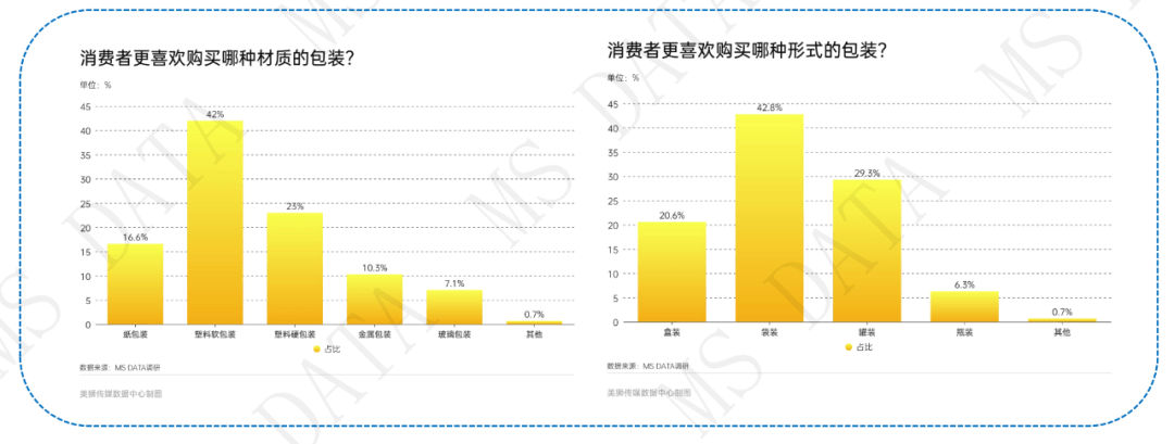 2、從形狀角度,異形袋包裝、小規(guī)格獨(dú)立包裝更被消費(fèi)者接受;