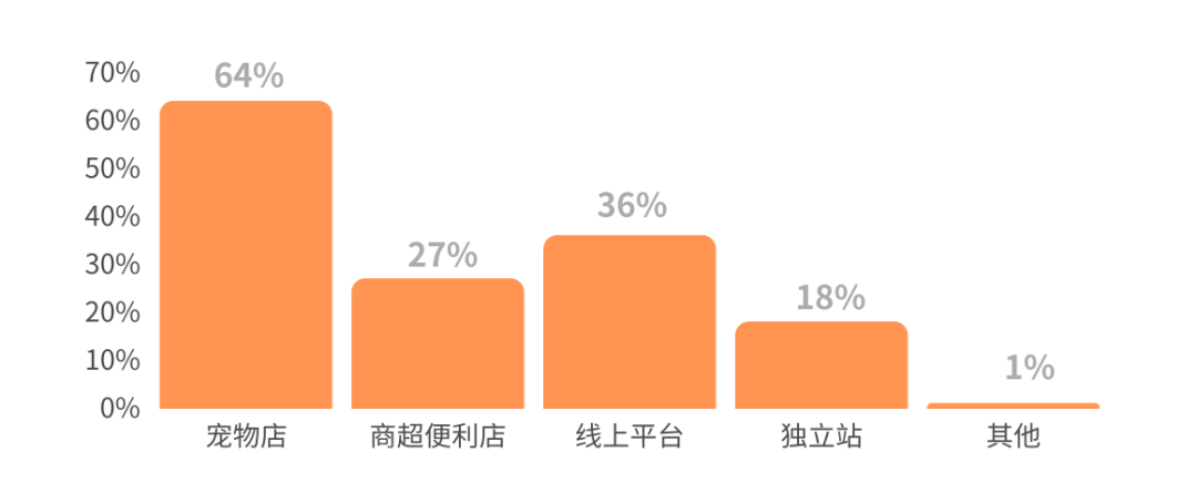 在電商渠道中,選擇在線電商平臺購買(如亞馬遜、Shopee、淘寶等)購買的新加坡寵物主占36%。