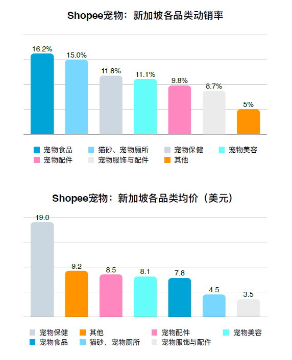整體上看,Shopee新加坡站中,寵物?品的銷售額?例最?。