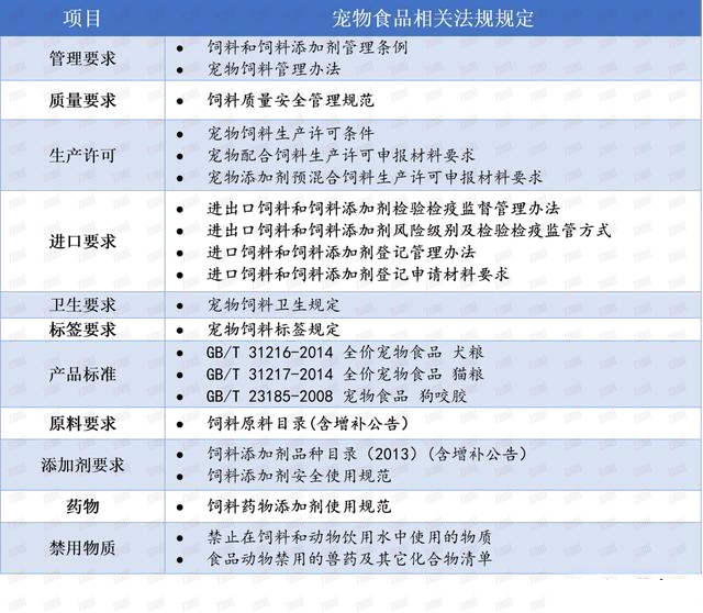 寵物食品所使用的飼料原料和飼料添加劑應(yīng)當(dāng)符合《飼料原料目錄》《飼料添加劑品種目錄》的要求,并遵守《飼料添加劑品種目錄》《飼料添加劑安全使用規(guī)范》的規(guī)定。