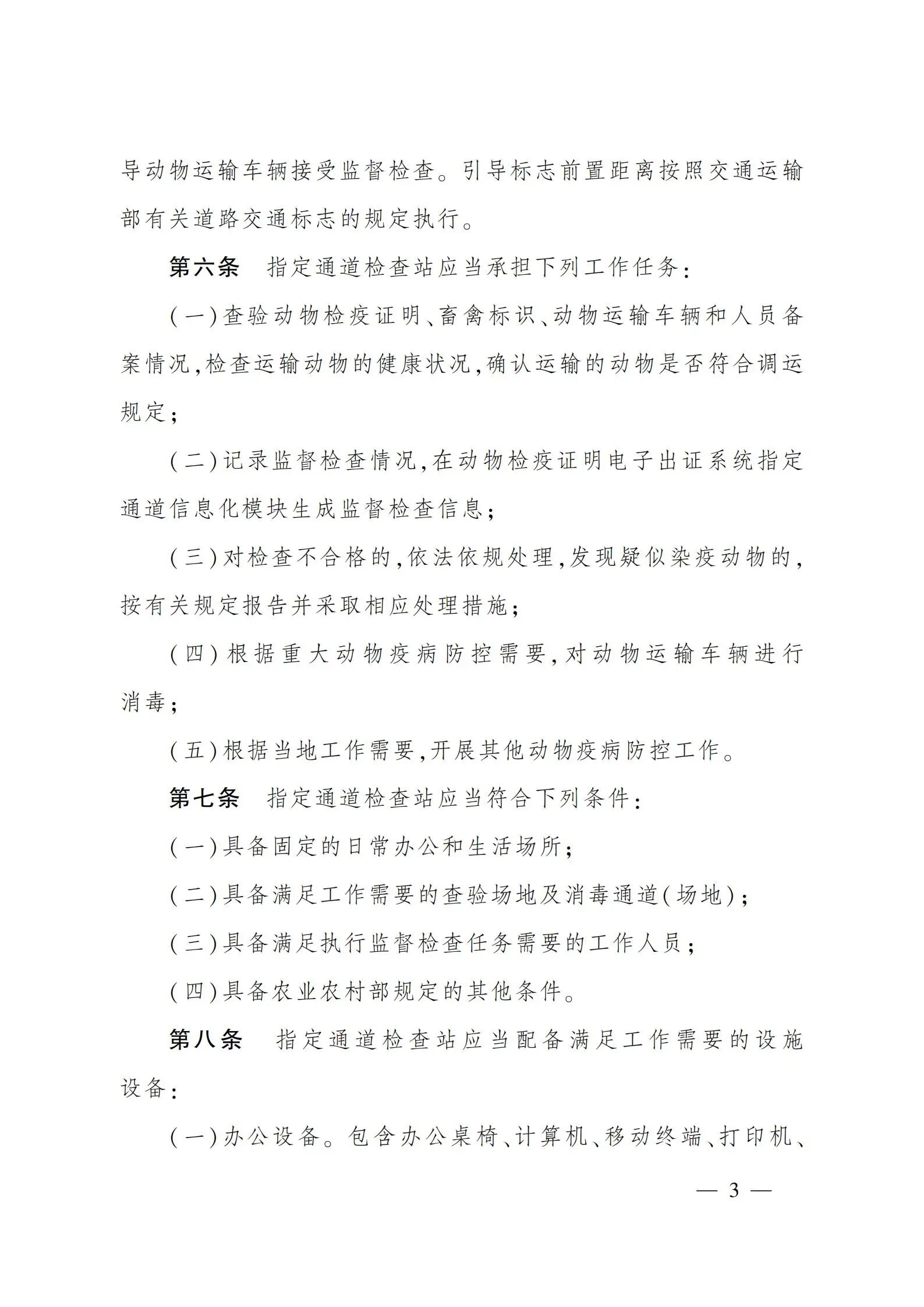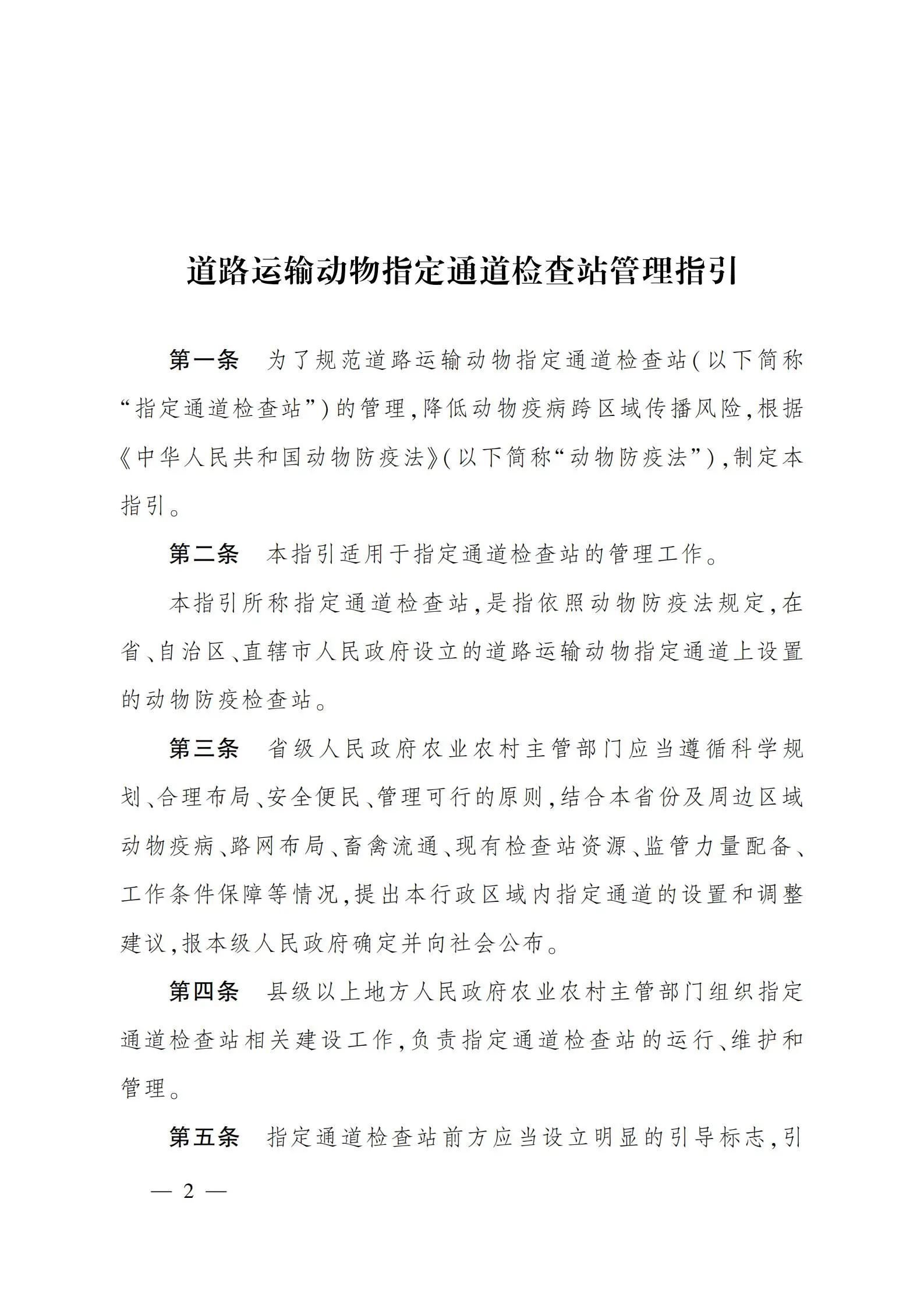 《道路運輸動物指定通道檢查站管理指引》具體如下: