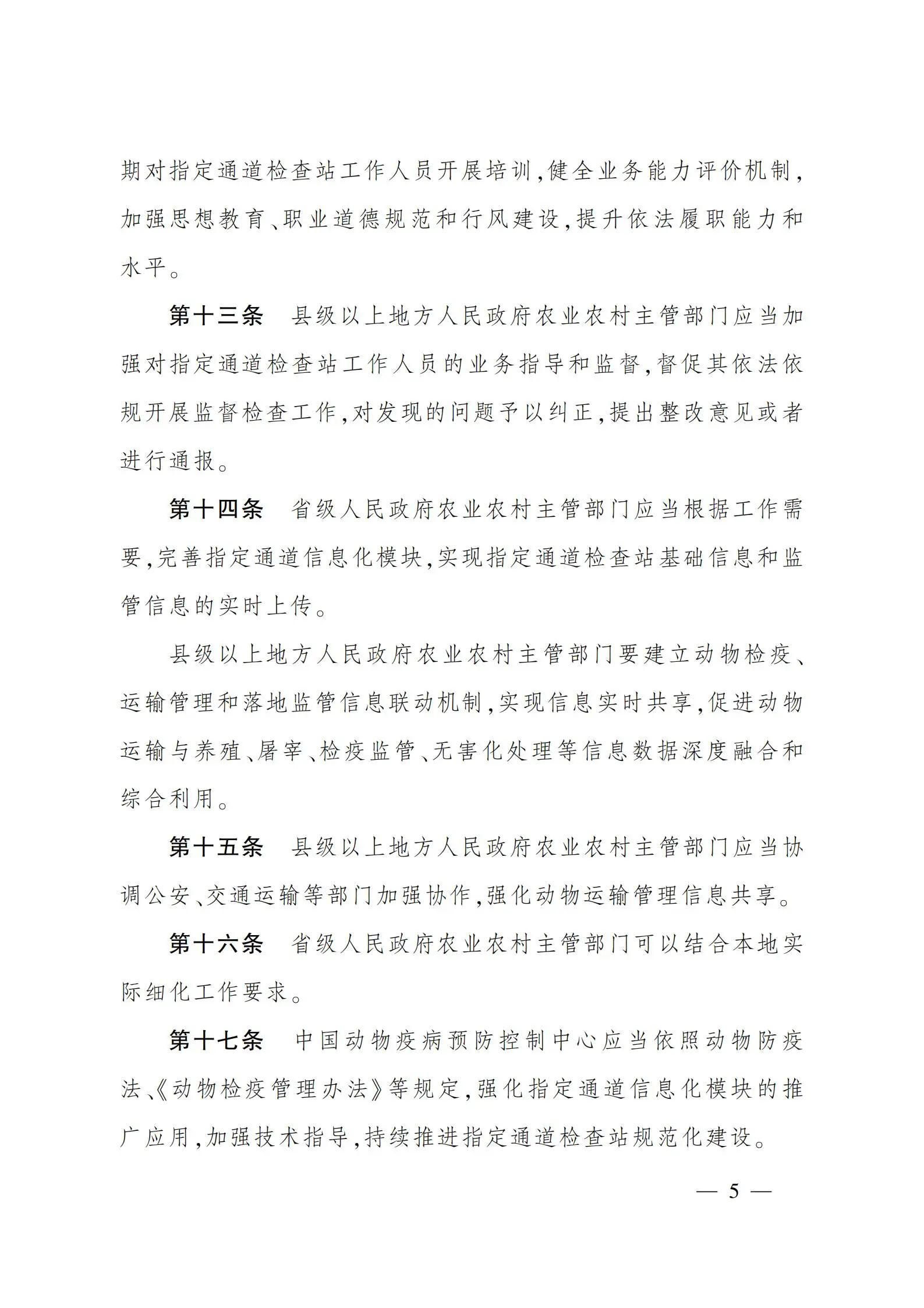 中國動物疫病預防控制中心應當依照動物防疫法、《動物檢疫管理辦法》等規(guī)定,強化指定通道信息化模塊的推廣應用,加強技術指導,持續(xù)推進指定通道檢查站規(guī)范化建設。