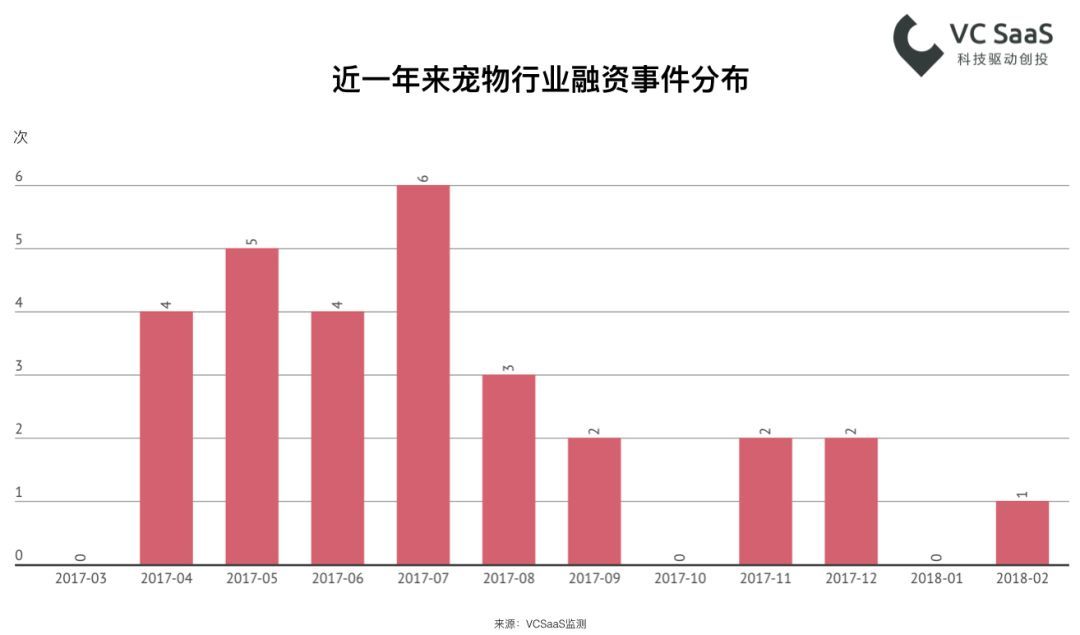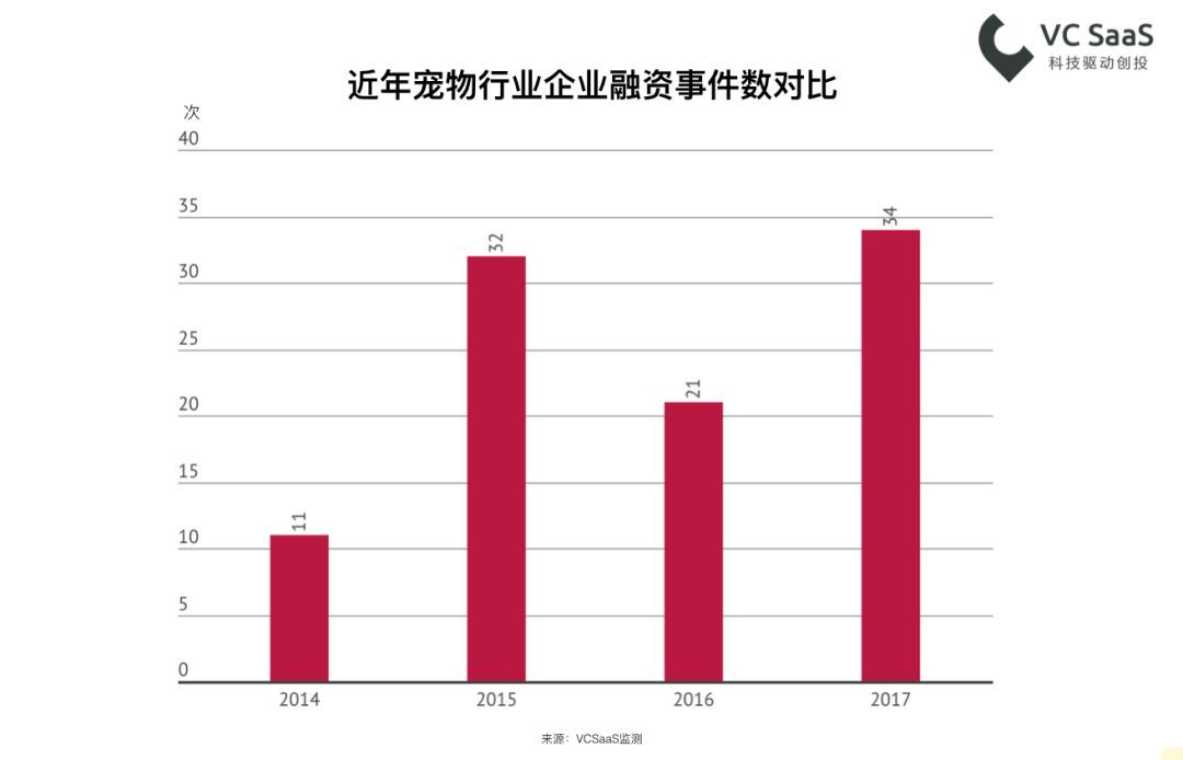 在2017年寵物行業(yè)迎來了企業(yè)融資的高峰,VC SaaS監(jiān)測全年共計(jì)有34次融資發(fā)生。