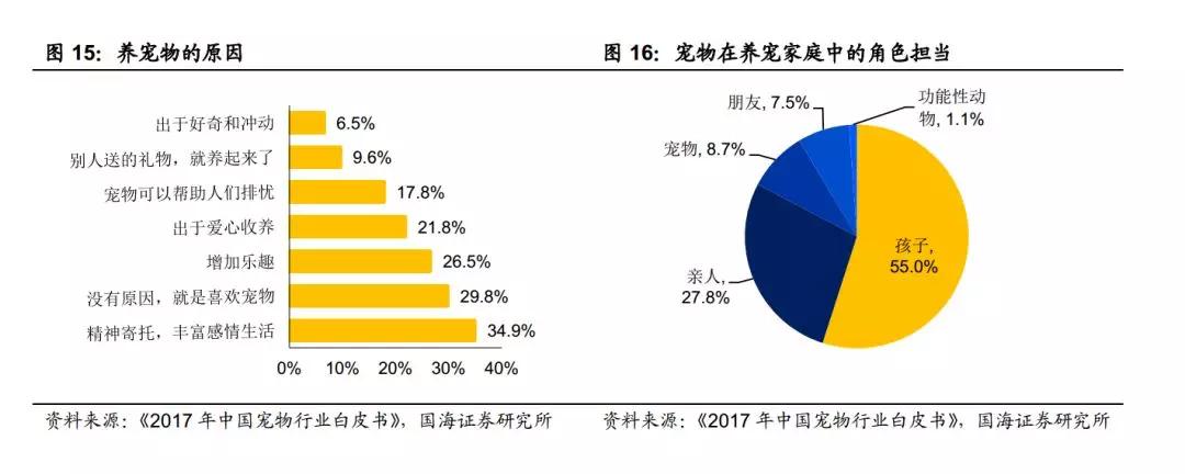 《2017 年中國寵物市場白皮書》的調(diào)查顯示,“精神寄托,豐富感情生活”赫然成為中國養(yǎng)寵物的首要原因;而從寵物在家庭中扮演的角色來看,“孩子”、“親人” 這類精神寄托對(duì)象占比超過八成。