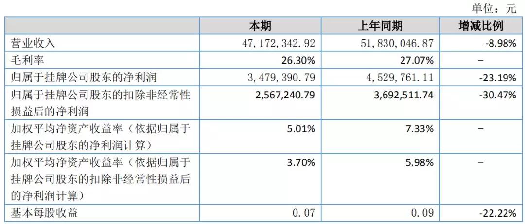 華亨方面表示,公司今年上半年實現(xiàn)營業(yè)收入4717.23萬元,比上年同期減少8.99%,營業(yè)成本3476.82萬元,比上年同期下降8.04%,實現(xiàn)凈利潤347.94萬元,比上年同期下降23.19%。