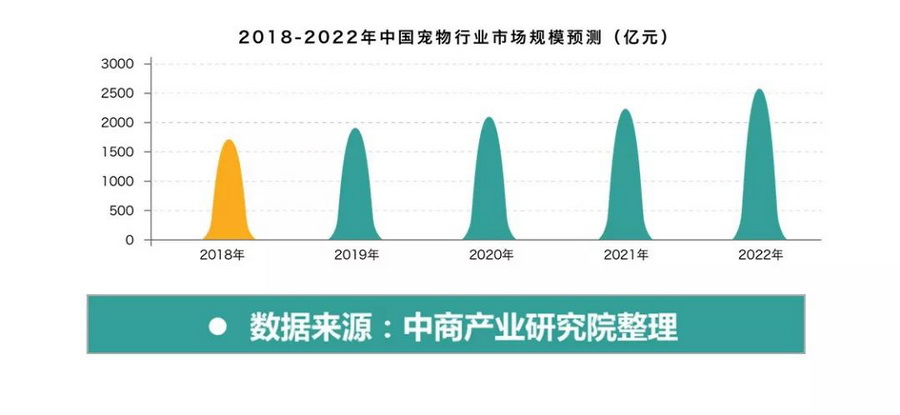 未來(lái),隨著寵物飼養(yǎng)觀念的更廣泛普及和寵物行業(yè)延伸服務(wù)的挖掘,我國(guó)寵物行業(yè)的市場(chǎng)空間將進(jìn)一步擴(kuò)大。未來(lái)3-5年寵物行業(yè)將繼續(xù)增長(zhǎng),預(yù)計(jì)2018年中國(guó)寵物行業(yè)規(guī)模將達(dá)到1678億元,到2021年,在養(yǎng)寵滲透率持續(xù)提升下,預(yù)計(jì)城鎮(zhèn)養(yǎng)寵率將達(dá)19%,寵物市場(chǎng)容量有望翻番,復(fù)合年均增長(zhǎng)率為16.6%。到2022年市場(chǎng)規(guī)模有望突破2500億元。