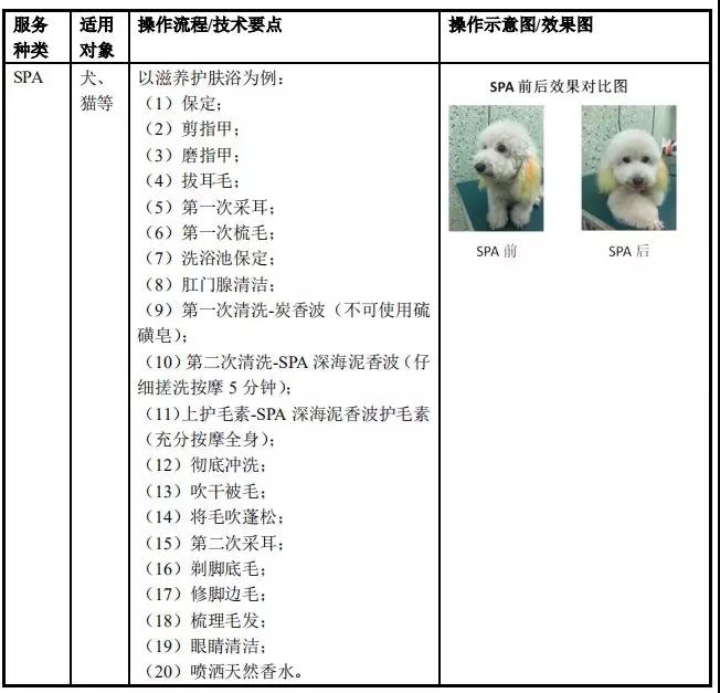 下圖為瑞鵬涉及寵物美容洗護業(yè)務的操作流程與技術要點: