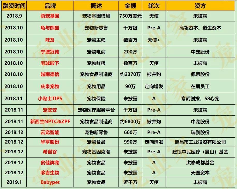 我們說過,資本從來不是萬能的,但另一方面,擁有最強(qiáng)財(cái)富嗅覺、行業(yè)研究能力的資本,同樣是用來觀察行業(yè)的關(guān)鍵視角。寵業(yè)家簡(jiǎn)單梳理了2018年全年的寵業(yè)資本投融資事件,或許可以從中發(fā)現(xiàn)一些有趣的變化。