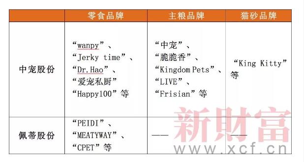 而國內(nèi)企業(yè)佩蒂和中寵在零食、主糧領(lǐng)域也擁有很多品牌。
