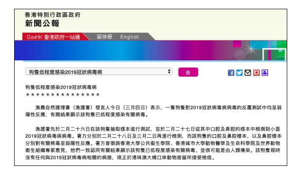 為了所有人和寵物的生命安全,我們不能不呼吁,請香港漁護署本著對生命和疫情防控負責的態(tài)度,進一步詳細公開對寵物狗的病毒檢測詳細信息。
