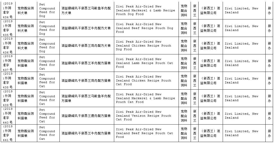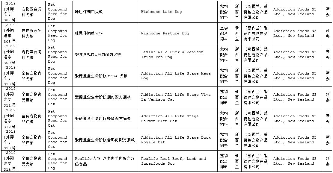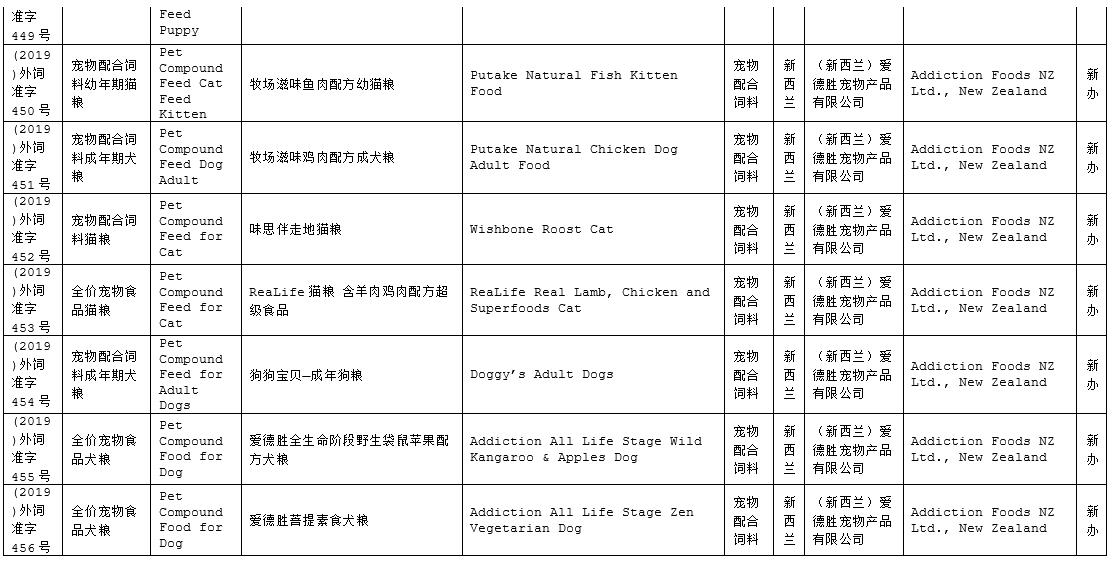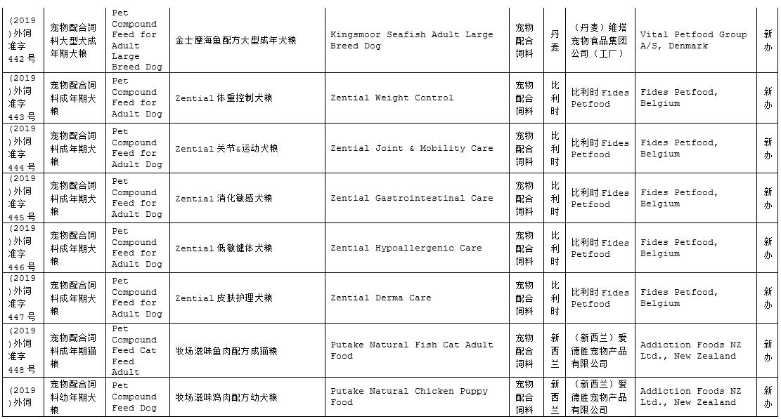 2019年進(jìn)口寵物食品在我國登記或續(xù)展獲證情況