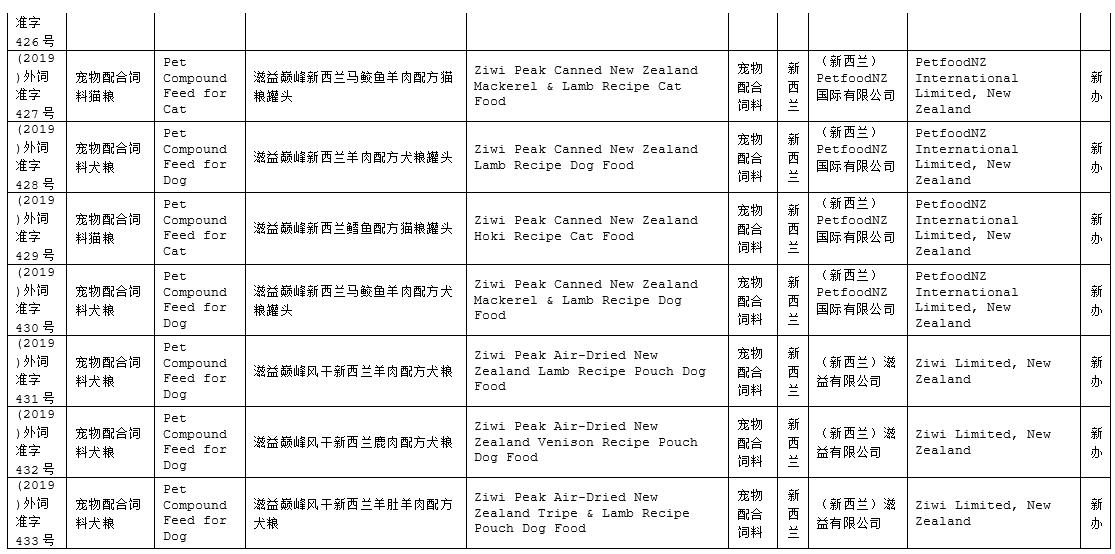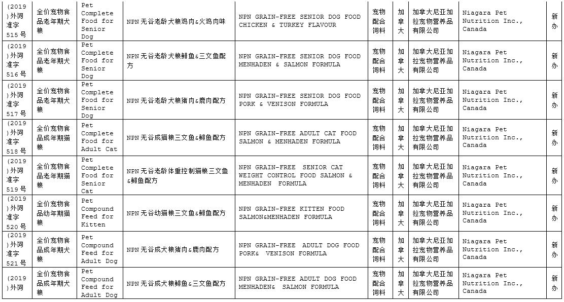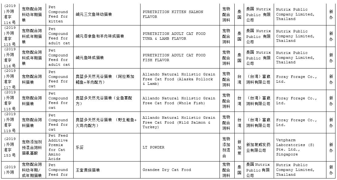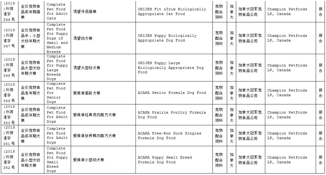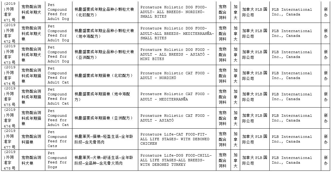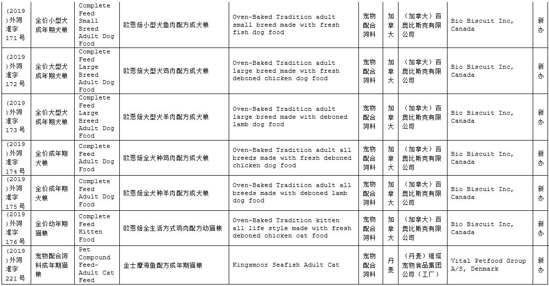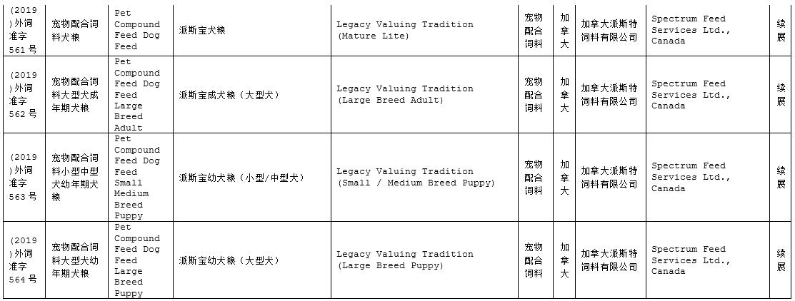 2019年 進(jìn)口寵物食品在我國新辦或續(xù)展獲證情況,如下: