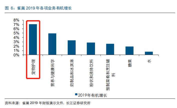 1)雀巢19財年寵物業(yè)務(wù)(約137億美元)占比達到14.72%,首進TOP3;寵物業(yè)務(wù)增速(有機增長達到7%)位居第一;