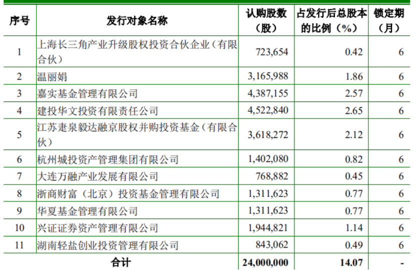 值得注意的是,在本次發(fā)行對象中,作為個(gè)人投資者的溫麗娟,以每股24.05元的價(jià)格(高于平均認(rèn)購價(jià)格)認(rèn)購3165988股,獲配金額為6999.99萬元。