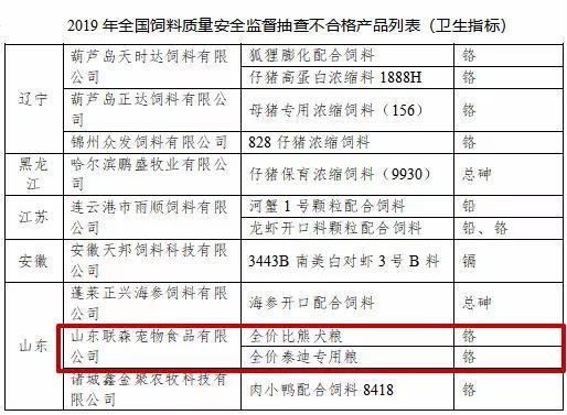 農(nóng)業(yè)農(nóng)村部畜牧獸醫(yī)局通報(bào)了關(guān)于2019年全國飼料質(zhì)量安全監(jiān)督抽查結(jié)果。其中從被監(jiān)督抽查企業(yè)庫中隨機(jī)選取1555家飼料(包含寵物飼料)生產(chǎn)企業(yè)進(jìn)行監(jiān)督抽查,從監(jiān)管專家?guī)熘须S機(jī)選取100名飼料質(zhì)量安全監(jiān)管專家開展抽樣工作。這也是農(nóng)業(yè)農(nóng)村部首次將“寵物飼料”納入到全國飼料質(zhì)量安全監(jiān)督抽查范圍中,而在此次寵物飼料54批次的抽查中,山東聯(lián)森寵物食品有限公司生產(chǎn)的“全價(jià)比熊犬糧”、“全價(jià)泰迪專用糧”被檢測出鉻指標(biāo)不合格。