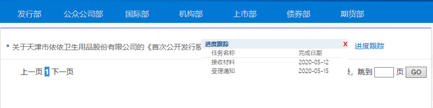 5月12日,中國證監(jiān)會官網(wǎng)披露了依依股份《首次公開發(fā)行股票并上市》等IPO申請材料已被接收,并于15日更新受理通知。