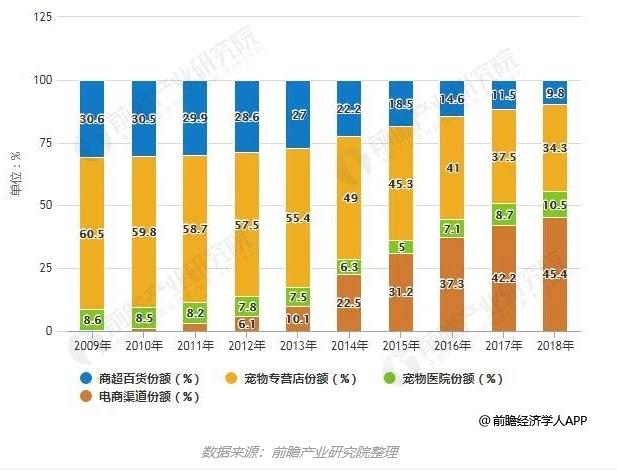 (中國(guó)寵物食品銷售渠道份額變化情況)