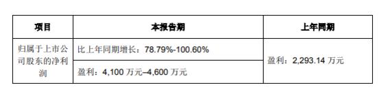 歸屬于上市公司股東的凈利潤(rùn)為4,100 萬元–4,600 萬元,比上年同期增長(zhǎng):78.79%-100.60%。