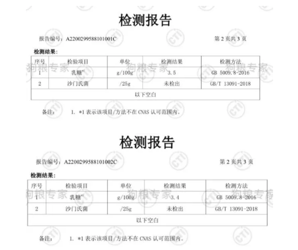 9月10日,寵物自媒體“狗糧專家”發(fā)文《零乳糖寵物奶騙局,實(shí)測(cè)2款羊奶乳糖超人標(biāo)準(zhǔn)6倍,2款零檢出》,文中指出,在檢測(cè)的四款寵物奶中,Z有羊奶、W星貓的乳糖含量分別為3.5%、和3.4%,超出人用零乳糖奶制品標(biāo)準(zhǔn)的7倍,其代工廠均為河南某乳業(yè)集團(tuán);帕特諾爾和zeal則未檢測(cè)出乳糖超標(biāo)。