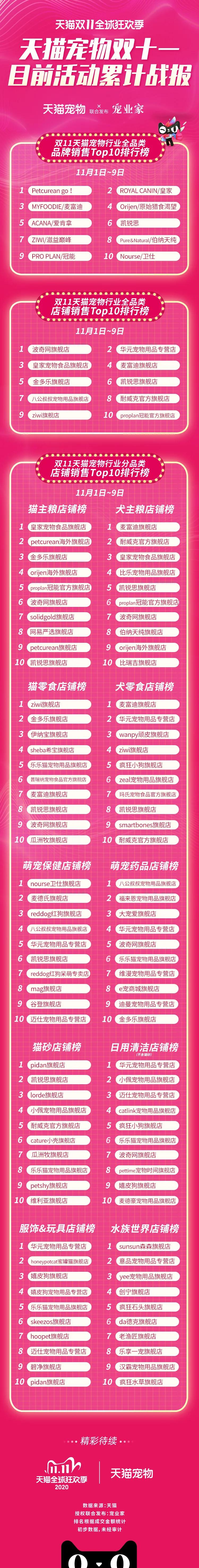 天貓寵物雙十一第1-9日戰(zhàn)報(bào)長(zhǎng)圖: