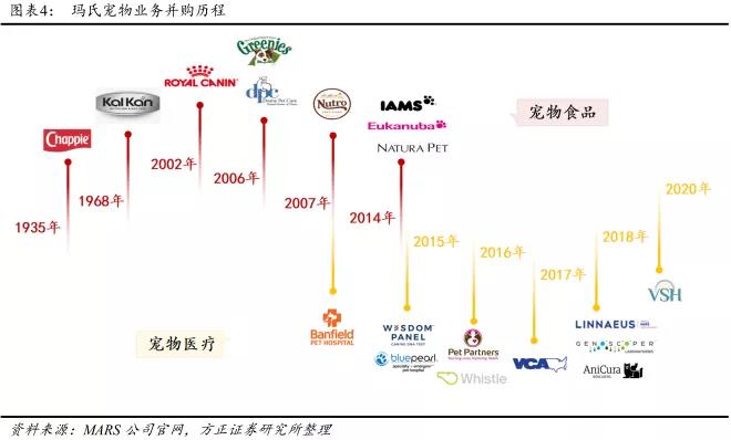 通過大力收購寵物醫(yī)療行業(yè)的領先公司,瑪氏寵物護理已經(jīng)從單一的提供寵物食品公司轉(zhuǎn)型成提供全套寵物解決方案的服務商。